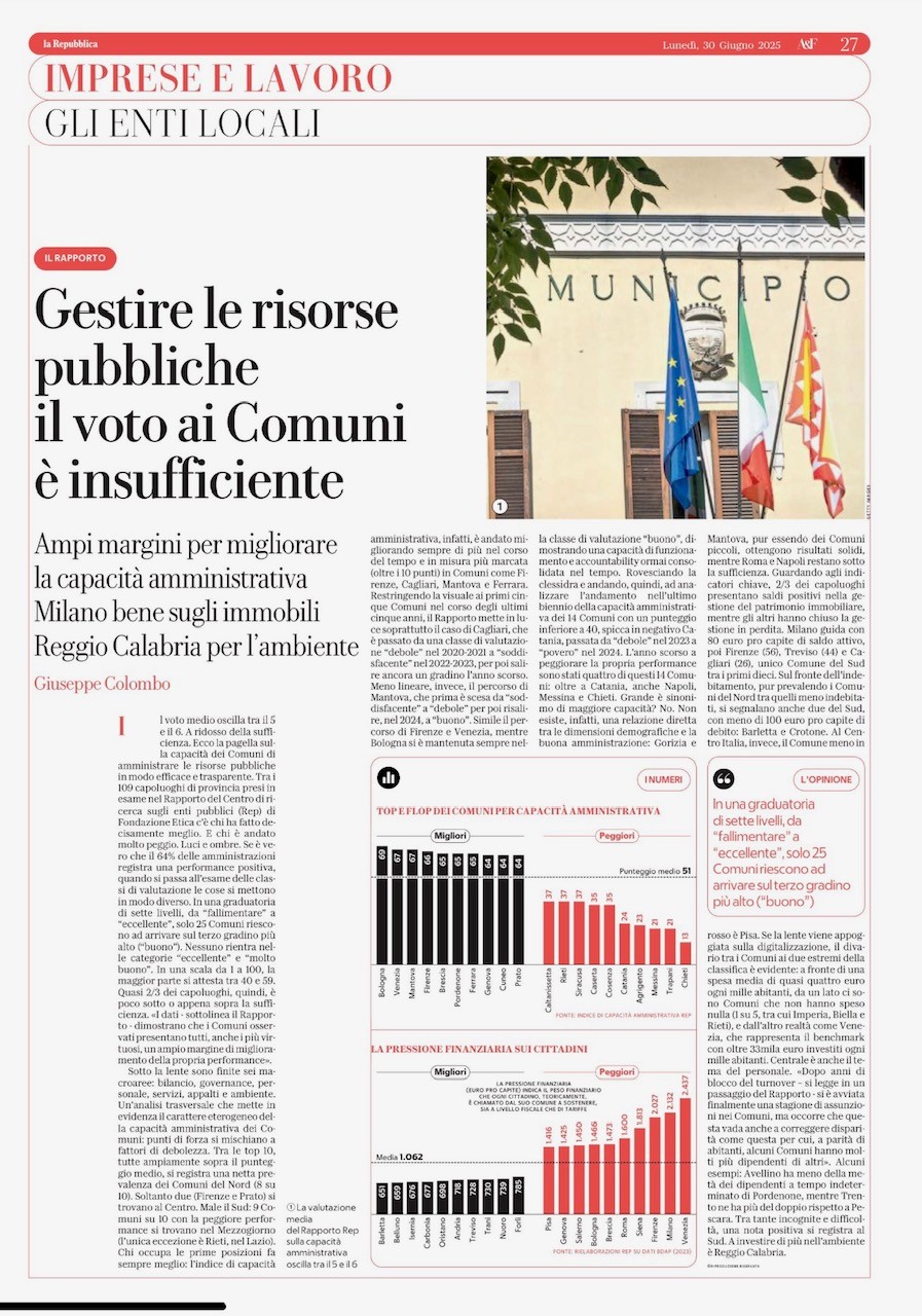 Fondazione Etica dà i voti al Comune: buoni risultati su bilancio e gestione del personale