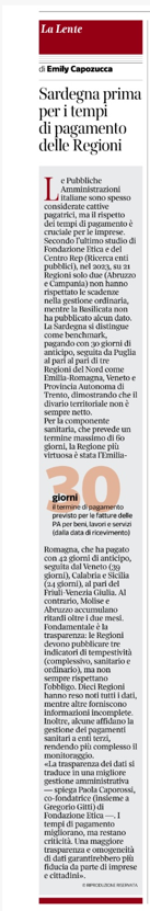 Sardegna prima per i tempi di pagamento delle Regioni