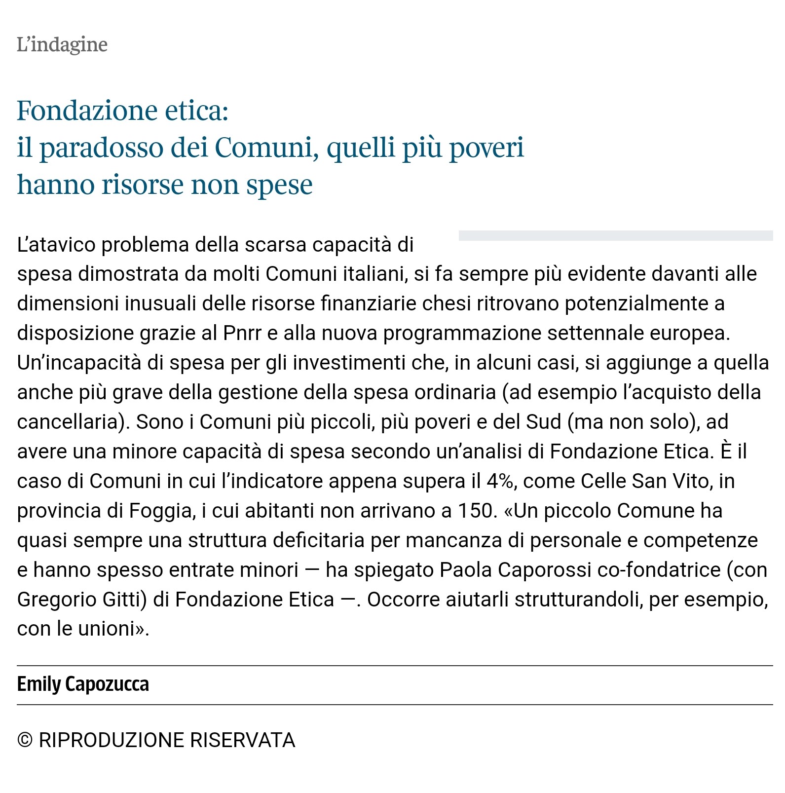 I Comuni più poveri hanno risorse non spese